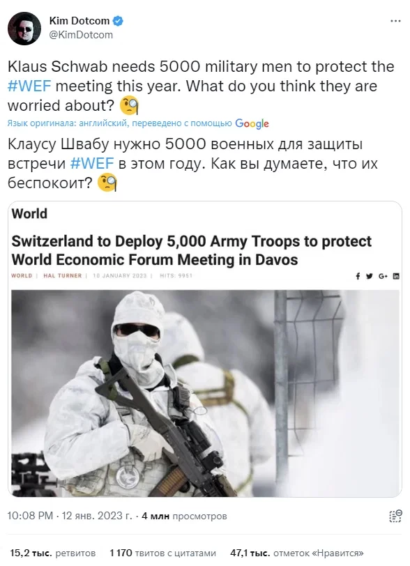 Ким Дотком процитировал сообщение, ранее опубликованное Newspunch, чтобы предположить, что элита испугалась.