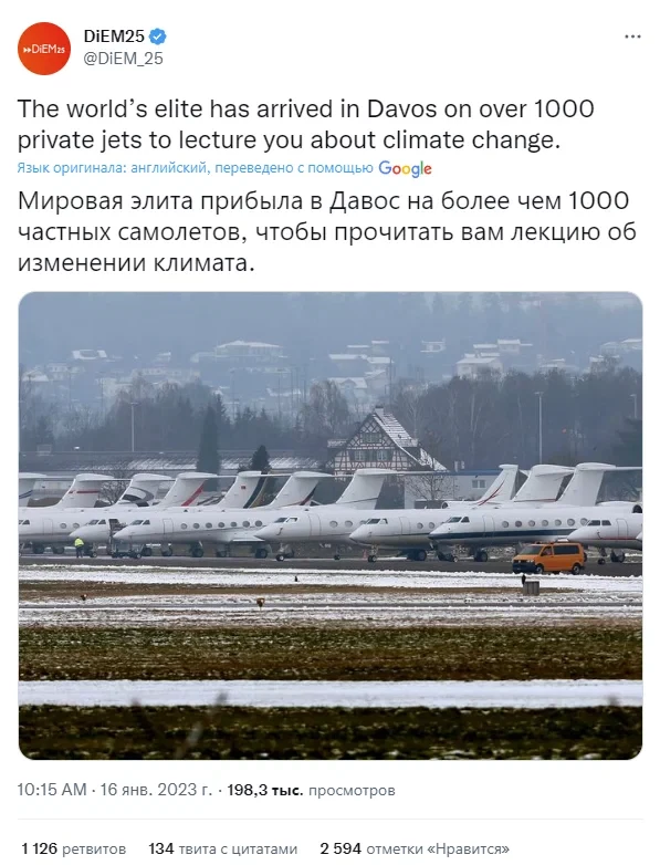За последние несколько дней сотни представителей глобалистской элиты приземлились на частных самолетах в аэропортах вокруг Давоса, чтобы за закрытыми дверями обсудить так называемые глобальные проблемы, такие как изменение климата.