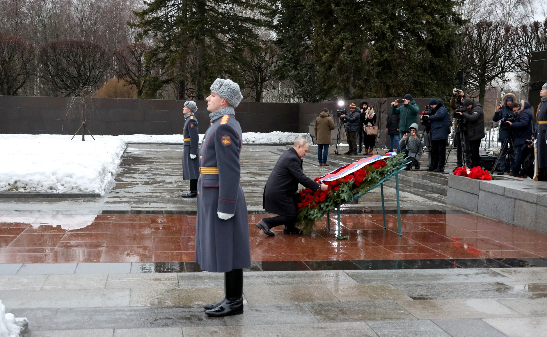 Глава государства посетил мемориальный военно-исторический комплекс «Невский пятачок» в Ленинградской области, где возложил цветы к памятнику «Рубежный камень». Далее на Пискарёвском мемориальном кладбище Президент принял участие в церемонии возложения венка к монументу «Мать-Родина».