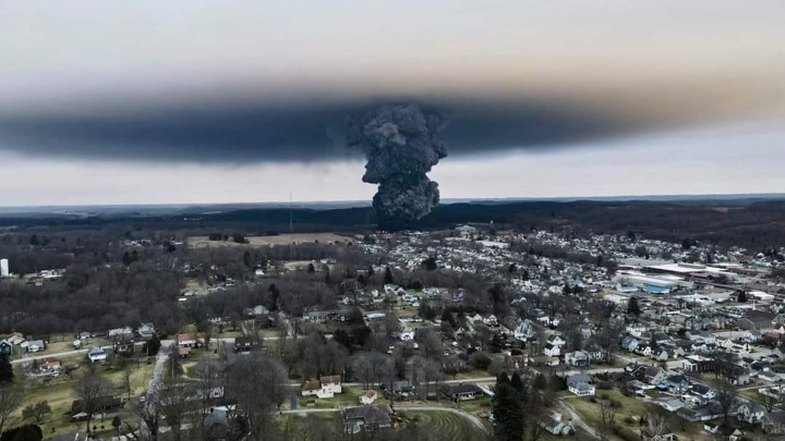 В результате крушения поезда, включавшего вагоны с химикатами, 3 февраля начался пожар. Чтобы избежать взрыва и разлета осколков экстренные службы организовали "контролируемую детонацию" емкостей с хлорвинилом. Жители в радиус одной мили были эвакуированы.