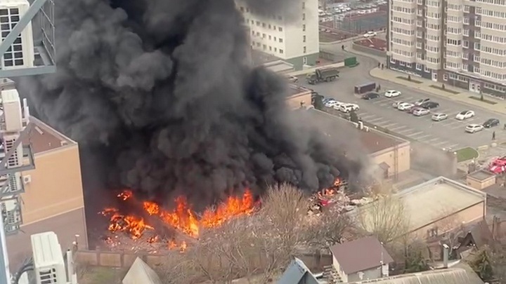 Сильный пожар вспыхнул в управлении Погранслужбы ФСБ по Ростовской области. Очевидцы утверждают, что ему предшествовало несколько взрывов.
