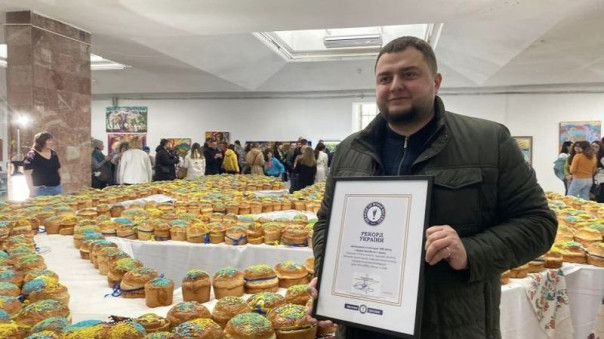 Новый украинский рекорд: львовяне выложили трезубец из 1000 пасхальных куличей за 25 минут и 17 секунд