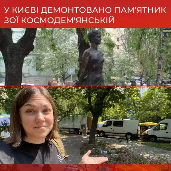 "В Киеве демонтирован памятник Зое Космодемьянской", — говорится в публикации, которая проиллюстрирована фотографией пустого постамента.
