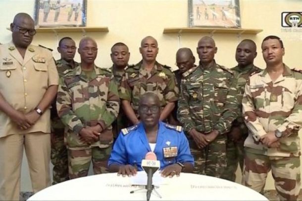 26 июля мятежники заявили об отстранении с поста президента Нигера Мохамеда Базума, закрытии границ республики и приостановке действия конституции. Всю полноту власти взял на себя Национальный совет спасения родины. Главный штаб Вооруженных сил Нигера поддержал восставших.