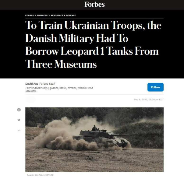 Для обучения солдат Вооруженных сил Украины военным Дании пришлось позаимствовать танки Leopard 1A5 у трех музеев, сообщил обозреватель Дэвид Экс.