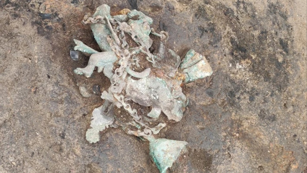 Исследователи раскопали ворота одного из зданий на главной улице города. Это здание было разрушено в результате пожара. В слое мусора под воротами и обнаружили бронзовый талисман. Изделие имеет замысловатую конструкцию: «центральной частью композиции был так называемый fascinum, магическое существо с телом в виде крылатого фаллоса с ногами, с собственным фаллосом и хвостом тоже в виде фаллоса. К фасцинуму крепились на цепочках четыре колокольчика». Точная конструкция находки будет понятна после реставрации. Подобные изделия обычно датируются I-III веками нашей эры.