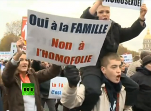 На улицы Парижа и других городов Франции вышли сотни тысяч жителей, выражая протест против закона, который позволит гей-парам вступать в брак и усыновлять детей. Их объединяет лозунг: