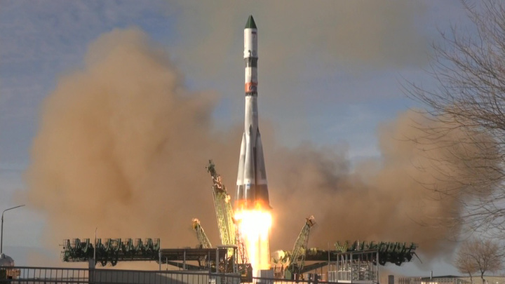С космодрома Байконур стартовала ракета "Союз-2.1а" с кораблем "Прогресс МС-26". Трансляцию ведет "Роскосмос".