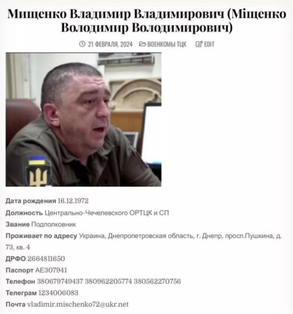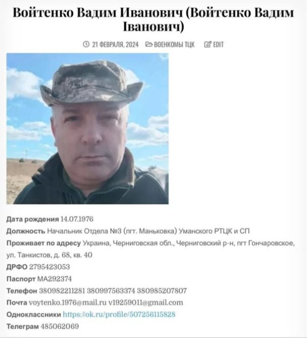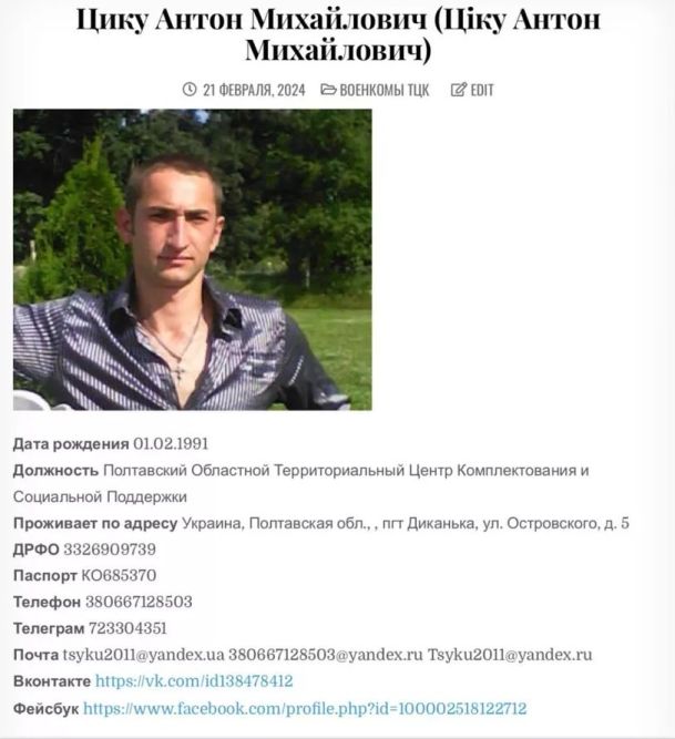 Помимо адресов, они выложили в сеть личные телефоны, паспортные данные, электронную почту и ссылки на страницы в соцсетях сотрудников ТЦК.