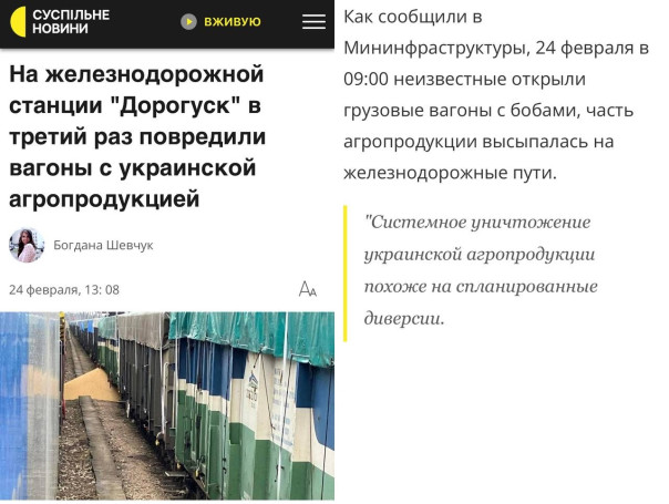 Ранее, 20 февраля, фермеры Польши, протестующие против поставок сельскохозяйственной продукции из соседней республики, высыпали два вагона кукурузы на пути рядом с границей Украины.