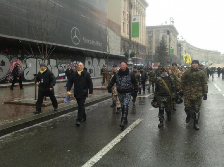 На Крещатике, в районе Бессарабской площади, толпа боевиков-"евроинтеграторов" в масках напала на киевлян, пришедших на "евромайдан" с требованием очистить улицы их города от баррикад и мусора.