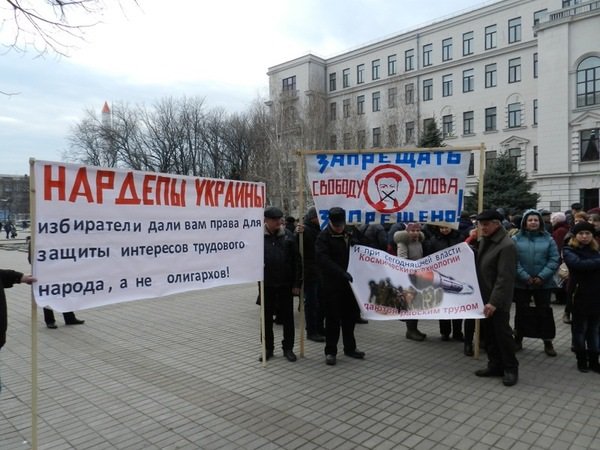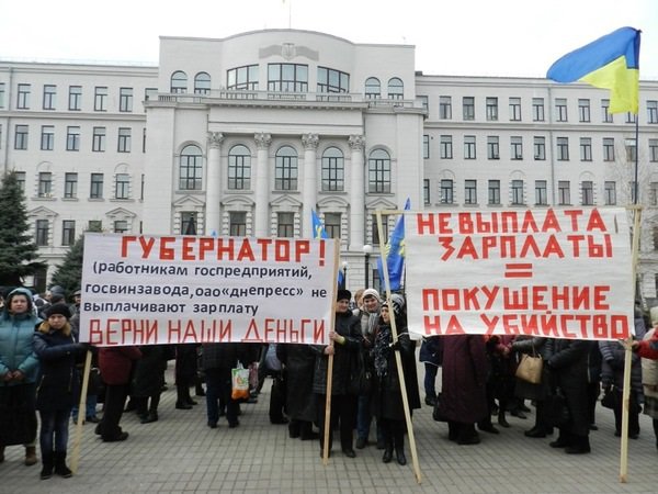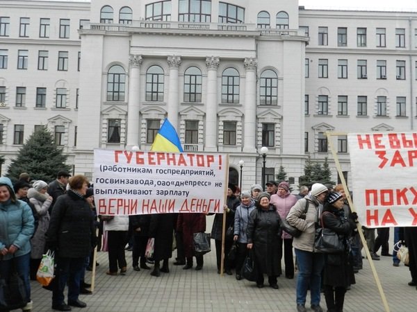 Сотрудники завода пришли в среду, 25 февраля, под зданием Днепропетровской облгосадминистрации требовали от губернатора Игоря Коломойского расплатиться с предприятием, сообщает Gorod.dp.ua.