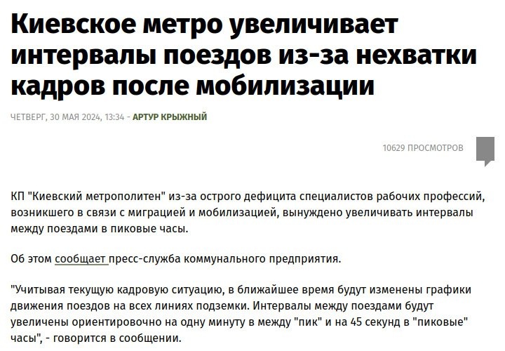 При этом мэр Киева Виталий Кличко недавно заявил, что ремонт аварийного тоннеля между станциями столичного метро «Лыбидская» и «Демеевская» идет «без сбоев по времени» и выразил надежду, что «в начале осени снова смогут все запустить». А все заявления, что метро затопит, что мосты упадут, что сейчас инфраструктура в позорном состоянии, столичный мэр списывает исключительно на работу российской пропаганды. Источник