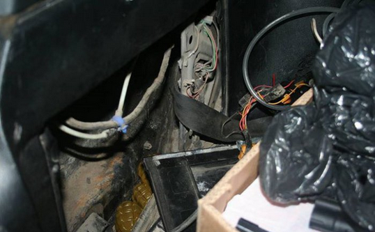 В машине было обнаружено более 16 килограмм тротиловых шашек, 37 гранат Ф-1 и РГД и более 40 запалов к ним, автомат Калашникова и 62 пачки патронов к нему, две РПГ-18, а также армейская противопехотной мина МОН-50.