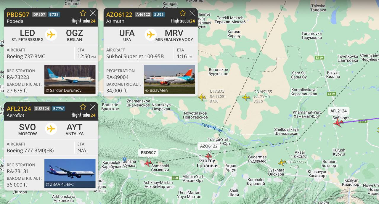 Первым диспетчерам доложил о происшествии экипаж Boeing 737 авиакомпании «Победа», который заходил на посадку в аэропорт Владикавказа, выполняя рейс из Санкт-Петербурга. Затем о прослушивании такого же предупреждения сообщили пилоты «Азимута», следовавшие из Уфы в МинВоды, а также экипаж Boeing 777 «Аэрофлота», выполнявший рейс из Москвы в Анталью.