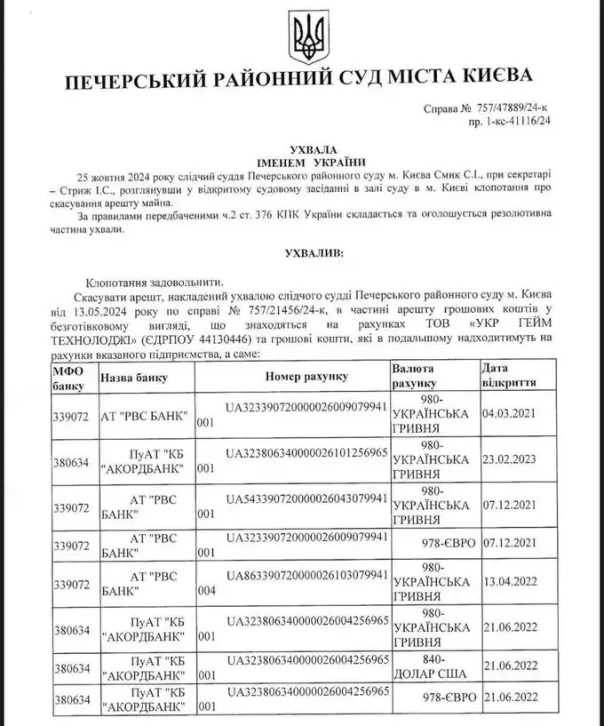 Решение касается снятия ареста с 65 миллионов долларов одного из онлайн-казино, которые уже были переданы в АРМА как «российские деньги» и направлены на нужды ВСУ. На них были приобретены ОВГЗ.