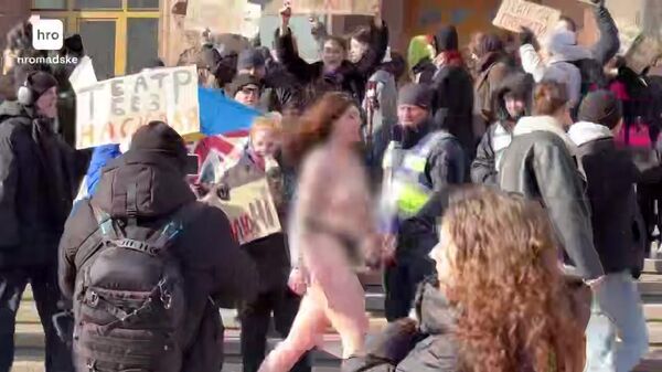 В украинской столице проходит митинг за увольнение худрука Молодого театра и преподавателя Киевского национального университета театра, кино и телевидения имени Карпенко-Карого Андрея Билоуса. Во время этого мероприятия одна из активисток разделась под стенами Киевского городского совета.