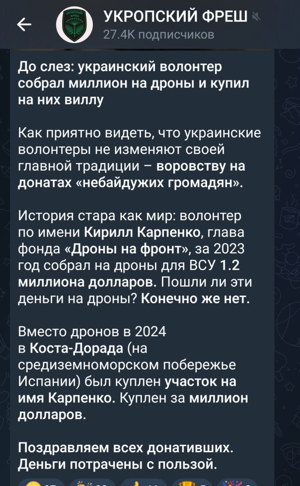Волонтёр Кирилл Карпенко собрал у хохлів швидкосбир на ядерку (зачеркнуто) дроні и немедля занял важный плацдарм в Испании