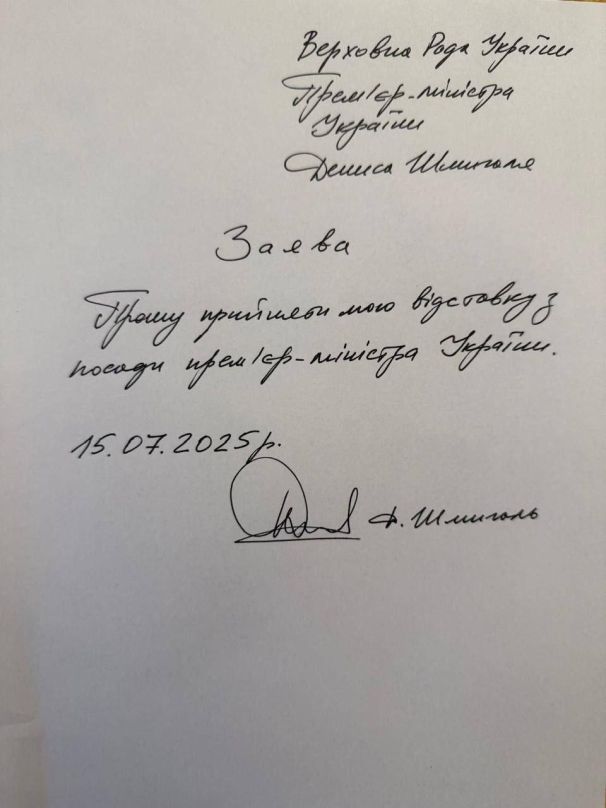 Заявление подписано 15 июля в адрес Верховной рады. Под фотографией своего заявления он поблагодарил всю команду за работу. Рассмотреть заявление Шмыгаля должен теперь украинский парламент.