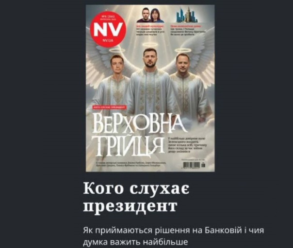Она обратила внимание на обложку одного из украинских журналов, где рогатые черти Владимир Зеленский и глава его офиса Андрей Ермак изображены в виде святых.