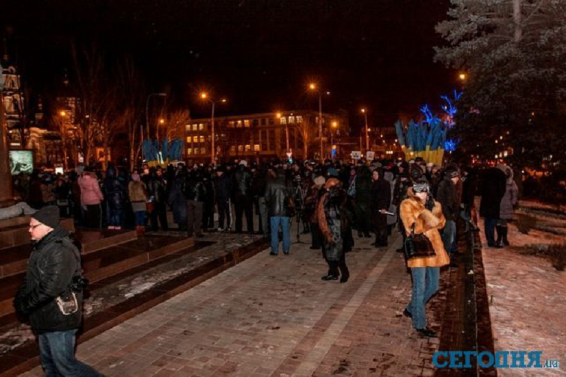 Люди скандировали "Нет брехне!", осуждали события, произошедшие в центре столицы и вступали в перепалки с редкими сторонниками Евромайдана, которые отказались от проведения сегодняшнего митинга.