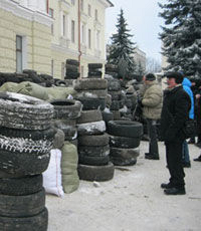 Для строительства используются покрышки и бочки. «Это будет предупредительная баррикада от украинского народа, назад дороги нет», — заявил комендант палаточного городка оппозиции Юрий Смаль. По его словам, оппозиционеры готовы захватить здание.