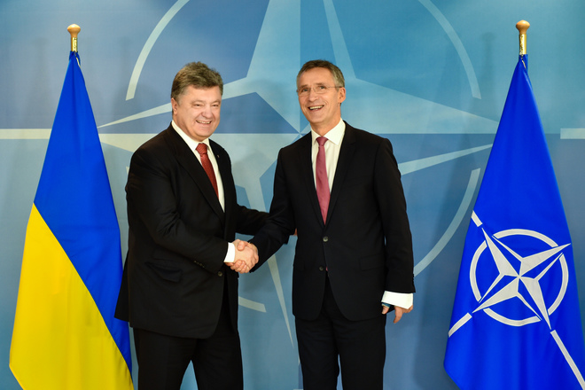 Президент Украины Петр Порошенко (слева) и генеральный секретарь НАТО Йенс Столтенберг во время встречи в Брюсселе.