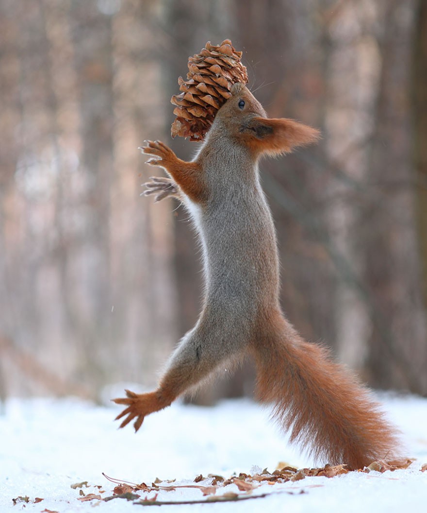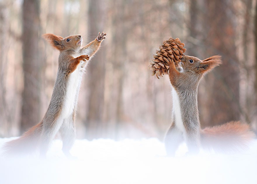 Фотограф из России Вадим Трунов имел опыт встречи с белками и раньше, но фотографии белок, которые фотографируют сами себя, лепят снеговиков и играют в волейбол - это нечто.