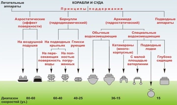 Корабли по принципу поддержания при движении делятся на: