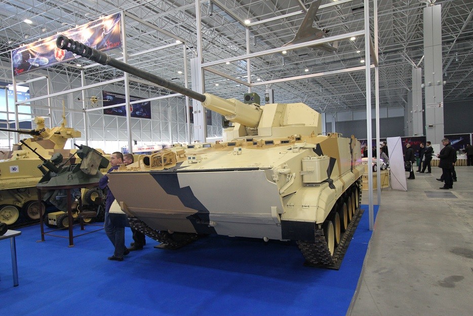 Один из двух представленных в экспозиции экспериментальных образцов робототехнического комплекса «Вихрь» на базе БМП-3, совместно разработанного АО «ЦНИИ «Буревестник» (Нижний Новгород), НТЦ КБ «Кунцево», НТЦ «Элинс», НПК «Сетецентрические платформы». Поддерживает экипажный дистанционный и полуавтоматический режимы управления. Данный образец оснащен малогабритным боевым модулем разработки АО «Муромтепловоз» (Муром) при участии АО «ВНИИ «Сигнал» (Ковров). Кубинка, 23.03.2017 (с) Денис Федутинов