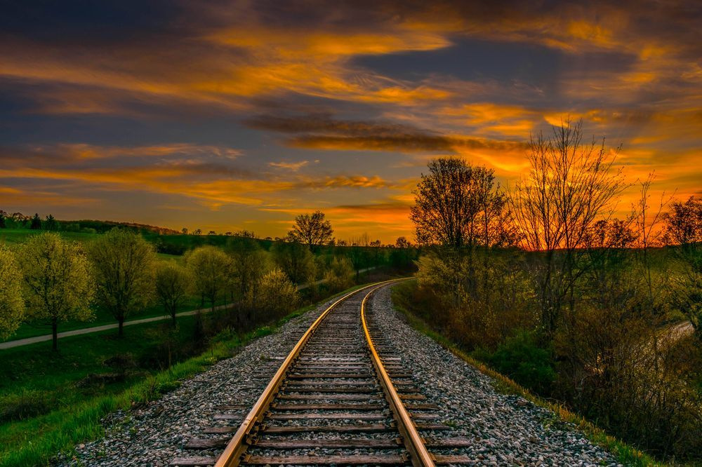 «Заходящее солнце над железнодорожным путём в Каледоне, Канада», – фотограф Джесси Уайтон (Jesse Wighton).