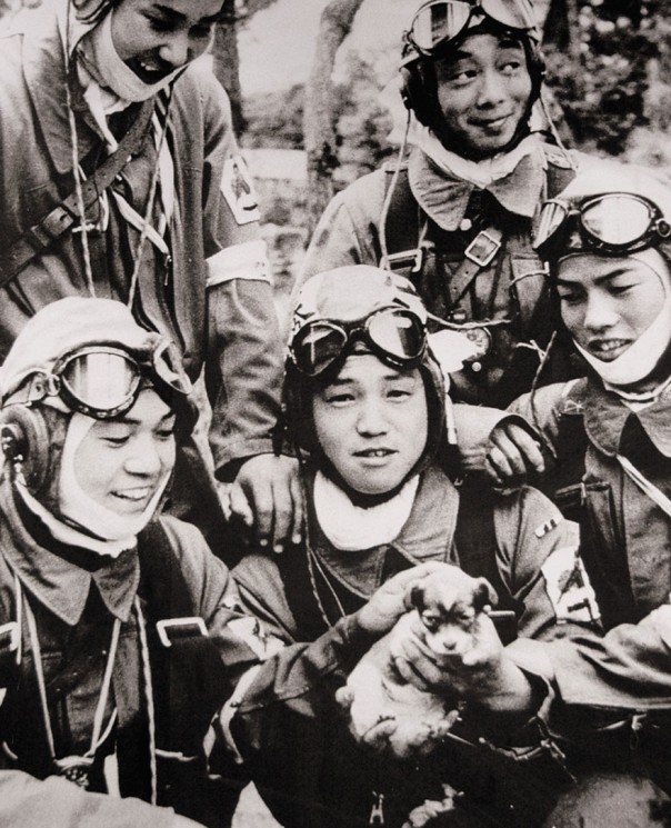 На фото 17-летний капрал Юкио Араки держит щенка, вокруг него четверо молодых парней в возрасте 18 лет, все они из 72-ого корпуса Синбу. Оператор Асахи Симбун сделал этот снимок за день до их боевого вылета с авиабазы для камикадзе Бансэй. Юкио Араки умер в 17 лет, участвуя в теракте на американских кораблях возле Окинавы 27 мая 1945 года. Почти всем пилотам-смертникам во время окинавской кампании было от 17 до 22 лет. Совсем не такими люди представляют себе фанатичных лётчиков-камикадзе. (Фото: wikipedia.org)