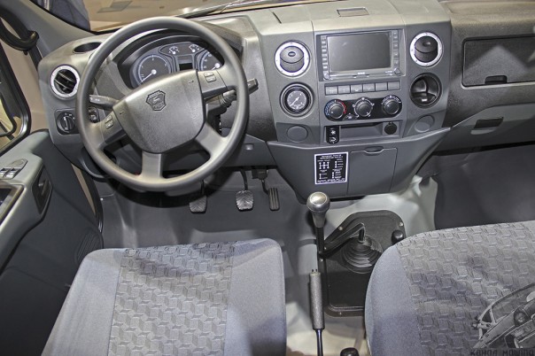 Этот опытный внедорожник построен на модифицированном шасси грузовика Садко со 149-сильным дизелем ЯМЗ-534 и двухрядной кабиной, унифицированной с ГАЗелью NEXT. А вот грузовая платформа у него – полностью оригинальная.