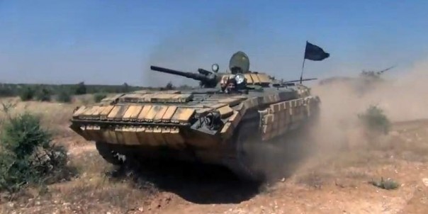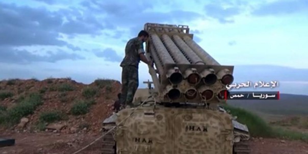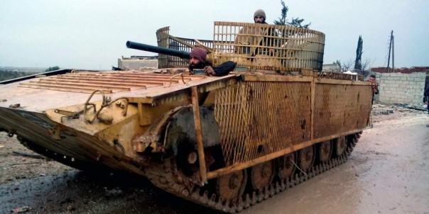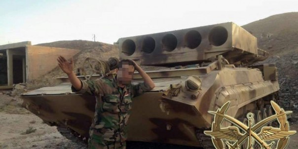Сирийцы нуждаются в технике, потому всё идёт в дело. Эта БМП-1 стала базой для ракетной установки с блоком из пяти направляющих для 300-мм ракет «Вулкан», напоминающих по форме «Луку Мудищева» М-31 времён Великой Отечественной.