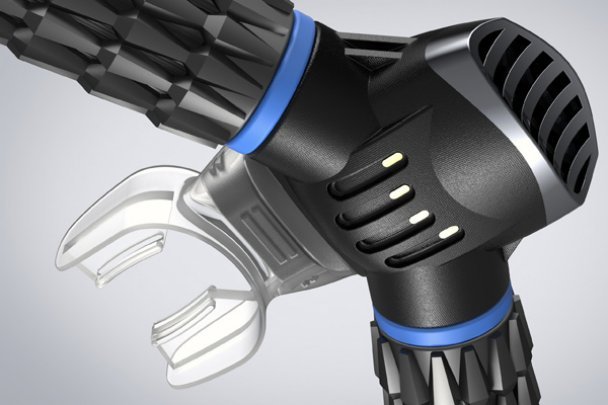 Регулятор включает в себя пластиковый загубник, который вам требуется просто прикусить. Два крыла по бокам маски работают как эффективные жабры морского животного. Их чешуйчатая текстура скрывает маленькие отверстия, через которые вода всасывается внутрь респиратора. Камеры внутри крыльев отделяют кислород и выпускают жидкость обратно – таким образом, позволяя вам комфортно дышать под водой.