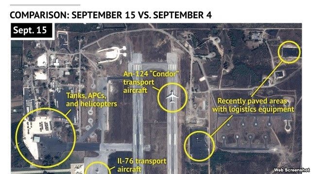 Ну, в смысле "Россия резко увеличила военное присутствие в Сирии в прошедшие выходные. В эту страну были переброшены два десятка боевых самолетов и несколько сотен морских пехотинцев"