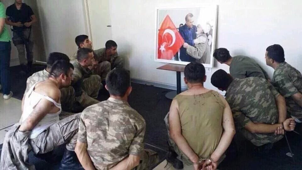 Своеобразное наказание для пленных мятежников – часами смотреть на портрет Эрдогана.