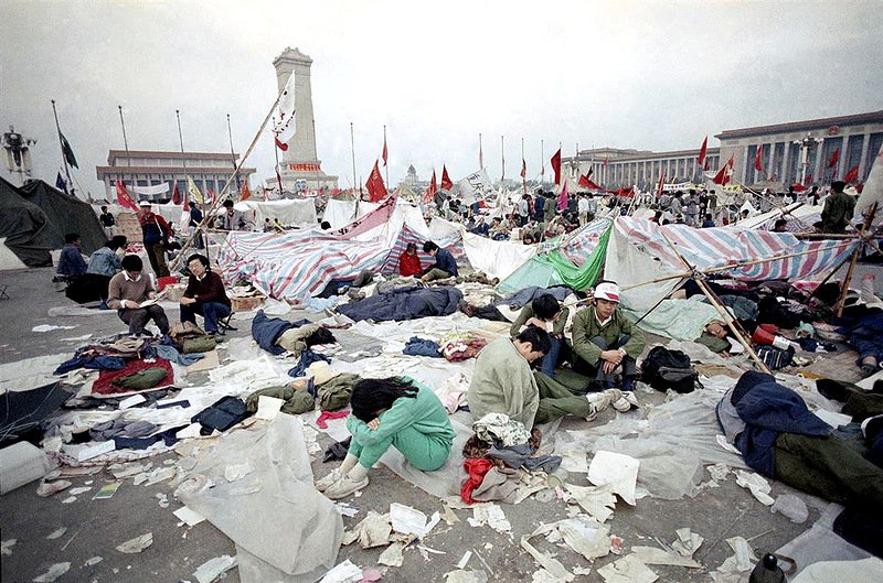 2. Для китайцев началось всё ещё в середине апреля 1989 г., сразу после смерти китайского Горбачёва – Ху Яобана. Тогда десятки тысяч вышли на демонстрацию, а затем был основан постоянный палаточный городок на главной площади столицы (технология ничего вам не напоминает?).