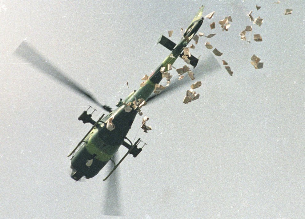 13. Увещевали демонстрантов даже с вертолётов, сбрасывая листовки.