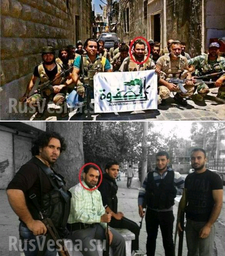 На одной из фотографий он держит в руках знамя «Исламских батальонов Аль-Савфа» — группировки, воюющей вместе с террористами «Ахрар аш-Шам» против правительства Сирии. По данным Дамаска, эта банда финансируется Саудовской Аравией.