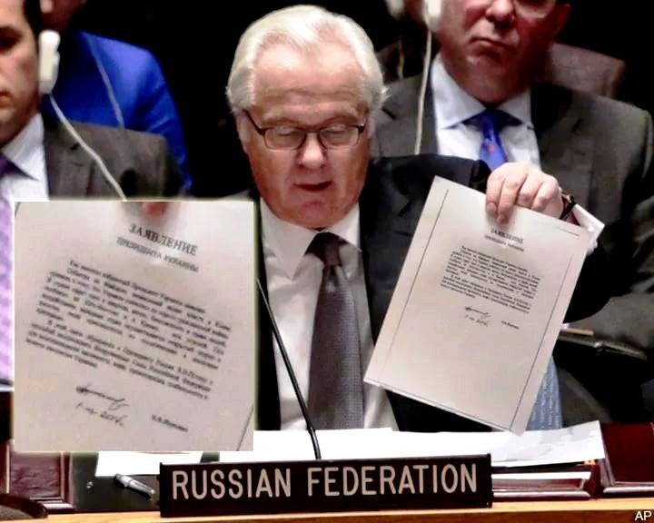 Напомним, 1 марта 2014 года президент России Владимир Путин получил от Виктора Януковича письменную просьбу использовать российские вооруженные силы для защиты населения Украины, заявил в СБ ООН постпред РФ Виталий Чуркин.