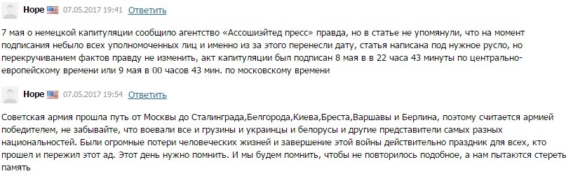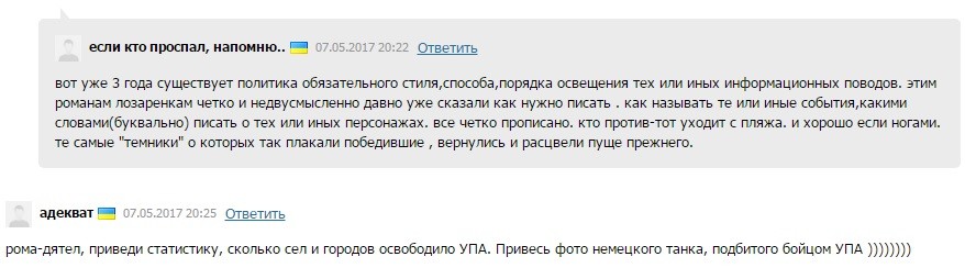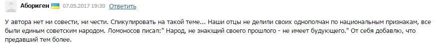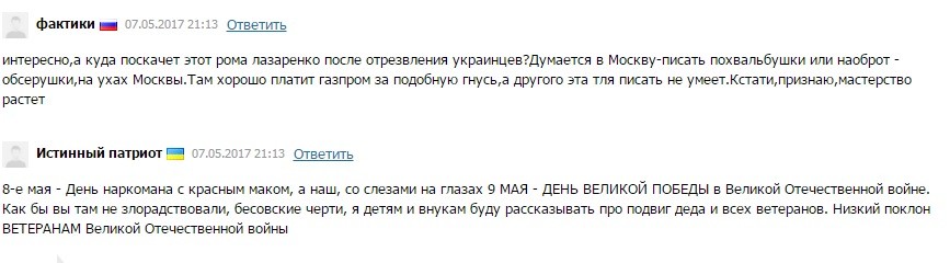 Статья вышедшая в преддверии главного праздника, когда то единой страны, 9 мая Дня Победы, даже у жителей города вызвала недоумение. Если конечно не обращать внимание на комментарии, которые пишут к стати сами редакторы и админы сайта. То люди понимают, что переписать историю не сможет никто, и сайт, который в очередной раз опозорил свой город, подлежит полному уничтожению. А писака Лазаренко с сайта 0629 - пусть ждет настоящей казни. Это я ему обещаю.