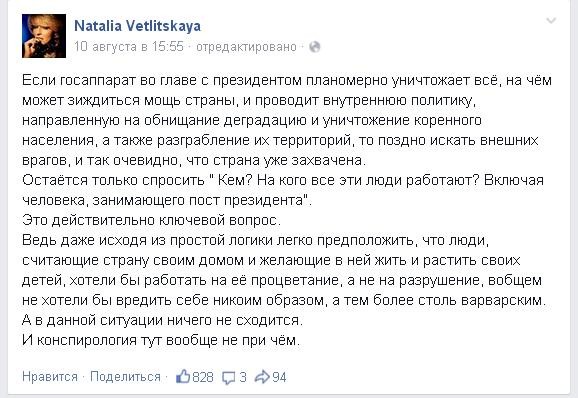Я честно не понимаю, как певичка, которая уже в тираже на шестом десятке лет, может писать такие детские посты. Я понимаю школоло, но Ветлицкая? Девочка из 90х запищала об "ужас-ужас".