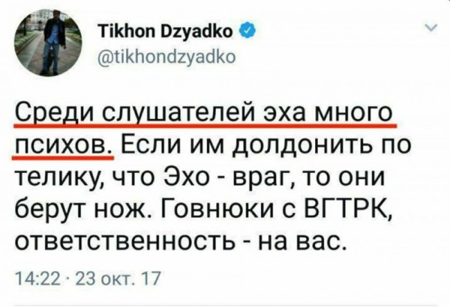 Можно еще набрать много разных текстов либералов. Но факт остается фактом - похоже, не только этот Борис Гриц не в себе, но и основная масса либералов недалеко от него ушла.