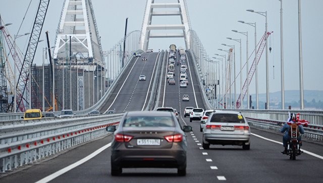 Сейчас въезд на мост разрешен легковым машинам и пассажирским автобусам. Движение грузовых машин откроется ориентировочно в октябре 2018 года, поездов — в конце 2019 года.