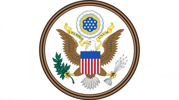 На лицевой стороне американской государственной эмблемы изображён белоголовый орлан, являющийся национальным символом США. В одной лапе он держит 13 стрел, в другой — оливковую ветвь, символизирующие то, что Соединённые Штаты Америки "хотят мира, но всегда готовы к войне".