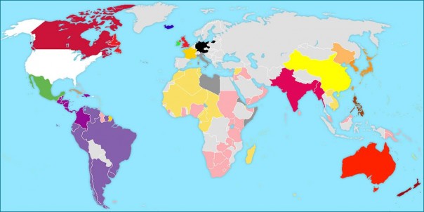 На британские колонии и подмандатные территории на Ближнем Востоке, в Африке и Юго-Восточной Азии (розовый цвет на карте) американцы планов почему-то не строили.