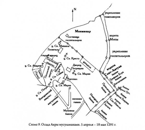 Через месяц аль-Ашраф находился под стенами Акры и 6 апреля открыл осаду. Его шатёр стоял на том самом месте, где за век до этого располагался лагерь иерусалимского короля Ги де Лузиньяна. Та осада была у всех на устах, но колесо фортуны сделало оборот, и теперь уже франки находились в роли осаждённых.