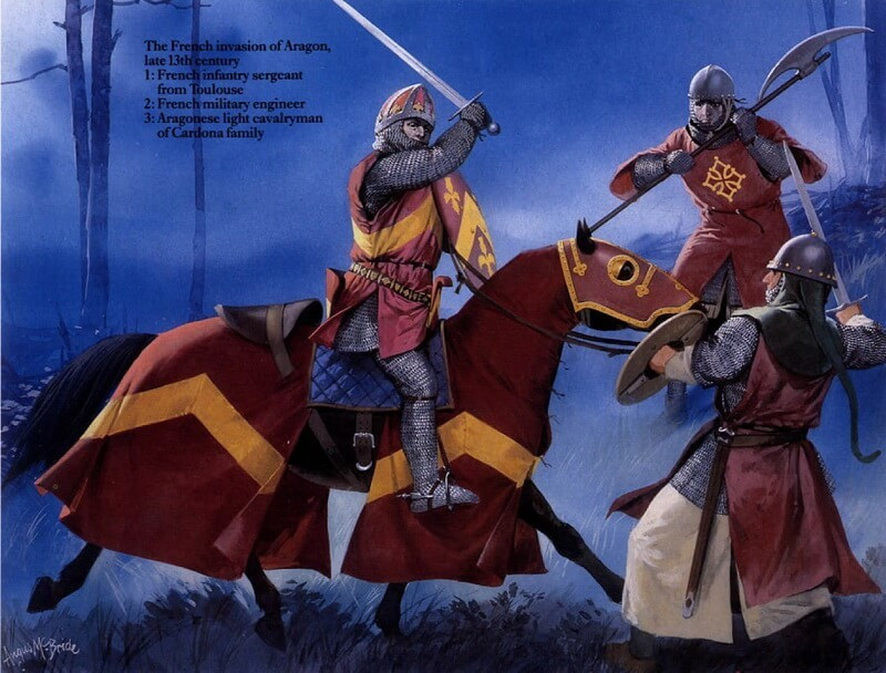 Крестовый поход против Арагона был частью этой войны. Весной 1285 года французский король Филипп III собрал большую армию — 13 500 человек, из них до 1500 рыцарей, 2000 арбалетчиков и 10 000 пехоты — для вторжения в Арагон и смещения неугодного ему короля Педро III.