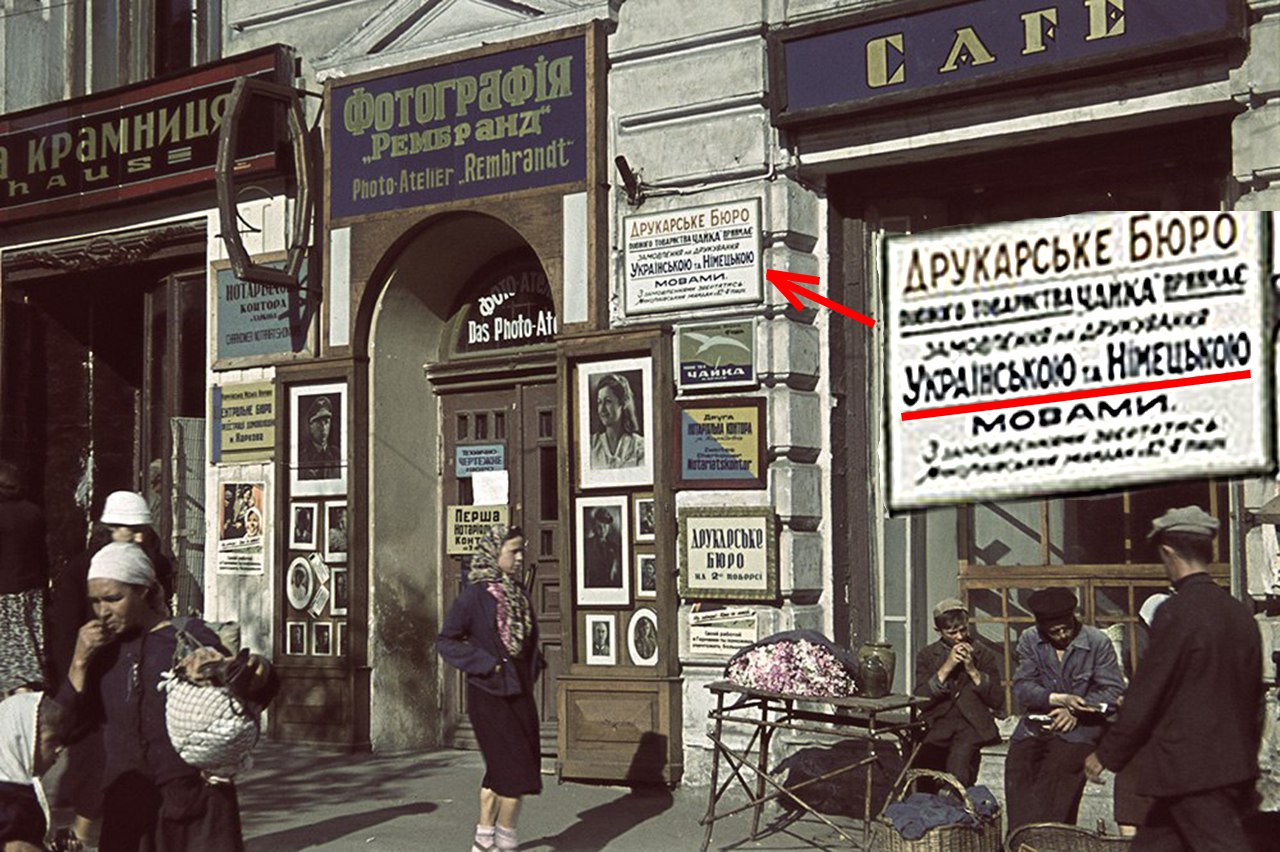 Первого июня этого года Приказом Управы Константиновской округа (северный Донбасс), в согласии с немецкими властями, запрещен русский язык в учреждениях. Делопроизводство во всех управах, полиции и суде может происходить только на украинском языке. Чиновники, которые не знают украинского языка, должны обязательно посещать курсы в кружках украинизации (два часа в неделю).